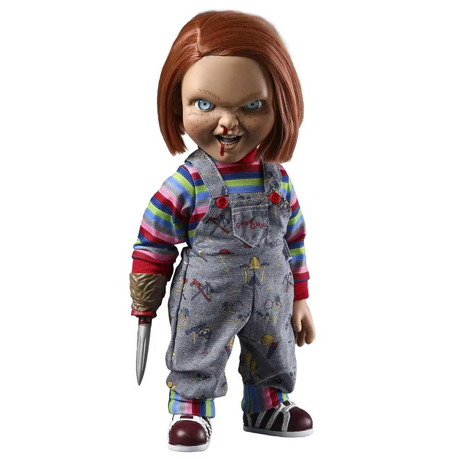 Esta figura não é apenas para exibição. Ela é falante, permitindo que você ouça as frases clássicas de Chucky, recriando cenas icônicas ou criando novas histórias de terror em casa. A atenção aos detalhes vai desde suas roupas, cabelos ruivos e sardas, até os olhos e expressão facial, tornando a experiência ainda mais realista e assustadora. 😈🩸