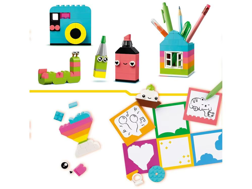 Com a Caixa Criativa Feliz 11042, a diversão nunca acaba! 🧱 Além das peças, o conjunto inclui ideias de construção e sugestões inspiradoras, incentivando cada pessoa a explorar novas possibilidades. Você pode começar seguindo os modelos sugeridos ou soltar a imaginação e criar algo totalmente exclusivo. É um presente perfeito para aniversários, datas especiais ou simplesmente para surpreender e encantar crianças e adultos apaixonados por LEGO.